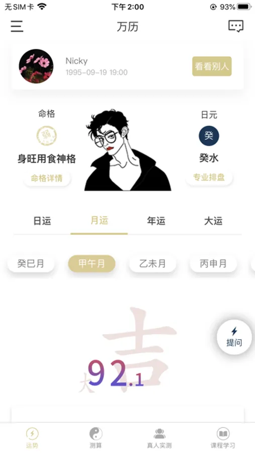 1:打开软件除了可以直接看到你的专属命格画像外,还能够清晰直接的看到每日运势、流月运势、流年运势以及大运运势。