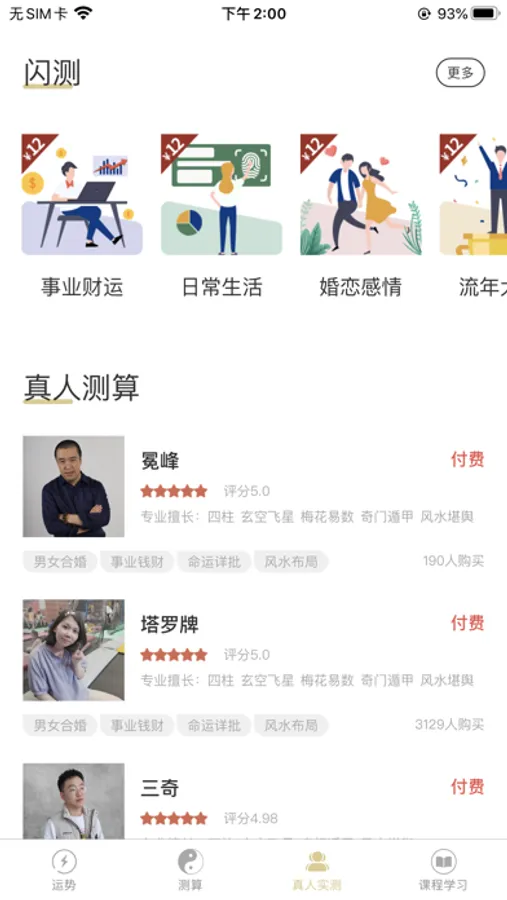 闪测是让用户选择一个想要测算的问题,然后大师通过后台会快速的回复,这样就节省了时间,也会让用户能够更加便捷的进行测算。