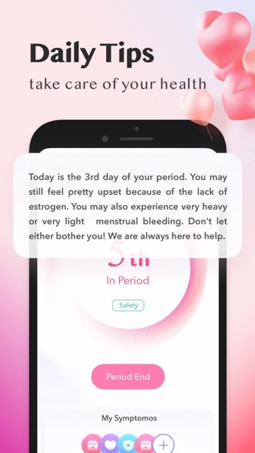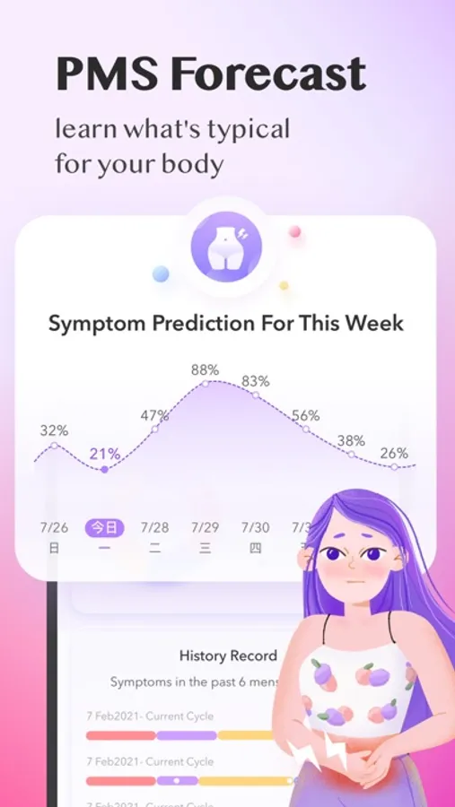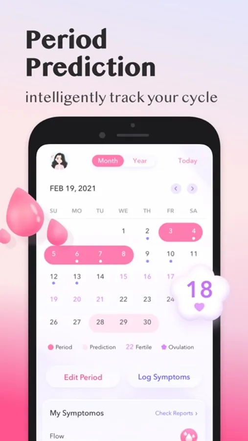 *Intelligently predict the occurrence of the symptom for you. You can learn when common PMS symptoms may occur, such as headache, cramps, breast tenderness, back pain and insomnia, etc.