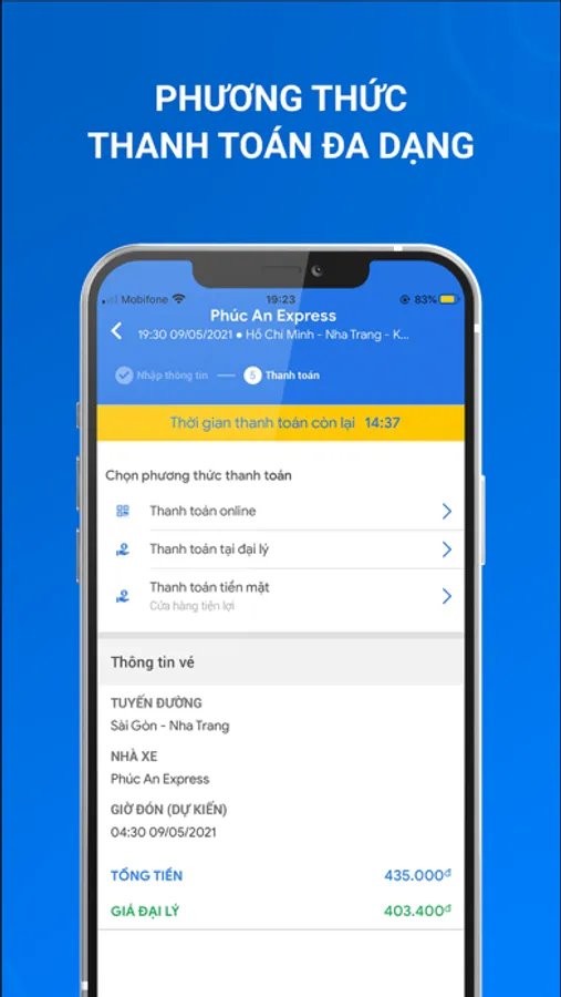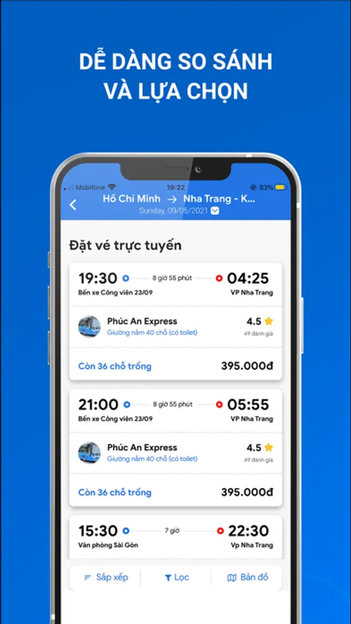 VeXeRe Đại lý có kết nối API VeXeRe giúp bạn đặt vé nhanh chóng từ hệ thống. Bạn dễ dàng truy cập kho vé xe lớn nhất Việt Nam với 5000+ tuyến đường, 2000+ nhà xe và 400+ bến xe. Cùng nhiều dòng xe hiện đại, xu hướng đầy tiện nghi như giường phòng, limousine, giường nằm cao cấp.