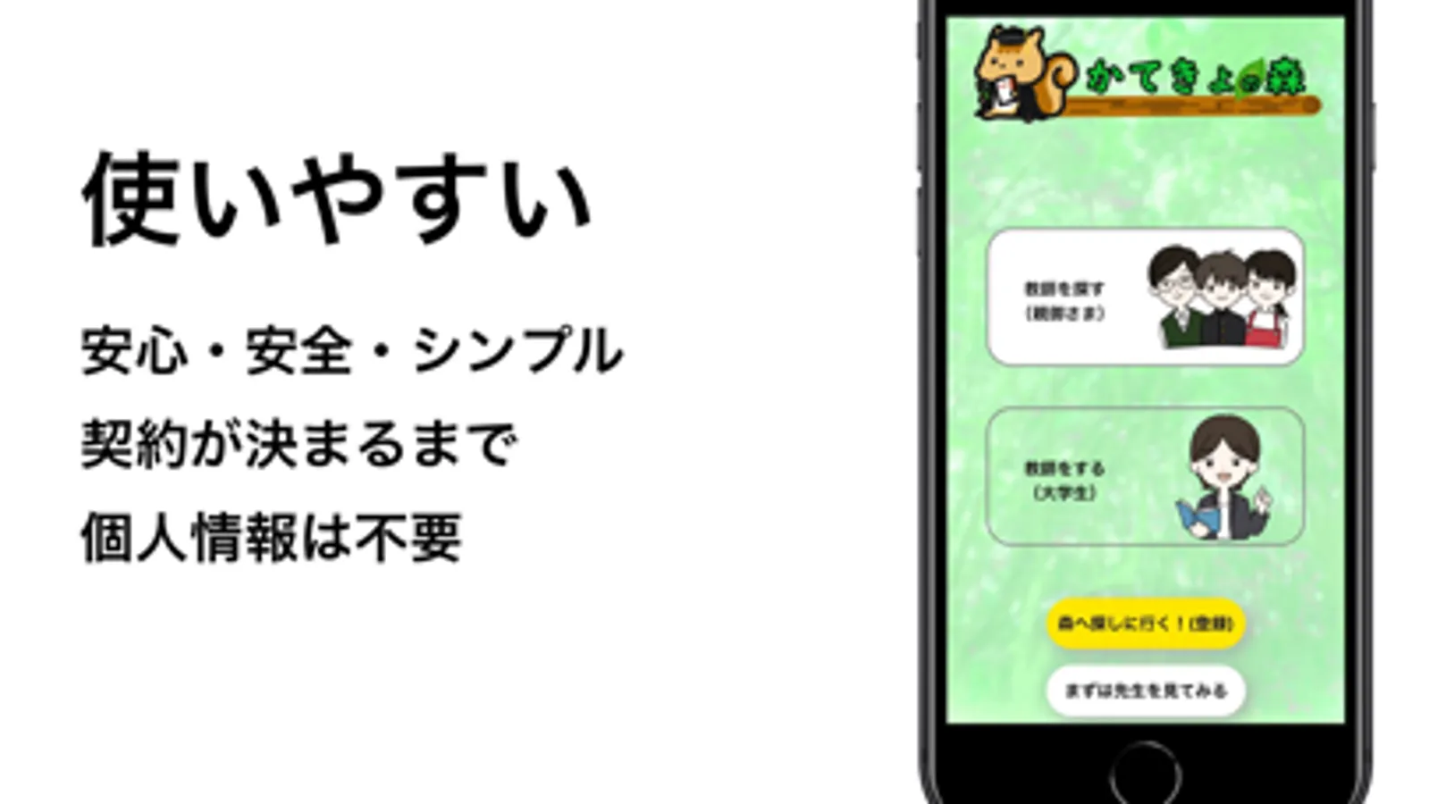 かてきょの森で、『いい影響を与えてくれる存在』である先生と巡り会えることを、心より願っております。