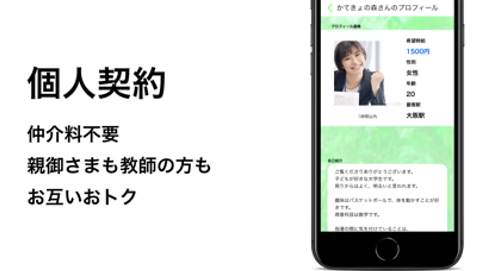 検索機能(時給・お住まい・科目・大学・オンラインなど)を使い、自己紹介などのプロフィールを見るので、契約前にお相手の方を知ることができます。
