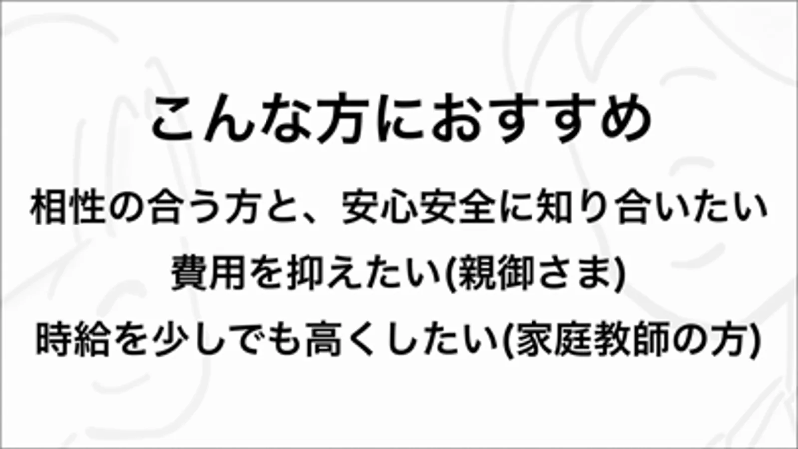 家庭教師の方と親御さまが直接知り合うことの出来るサービスです。