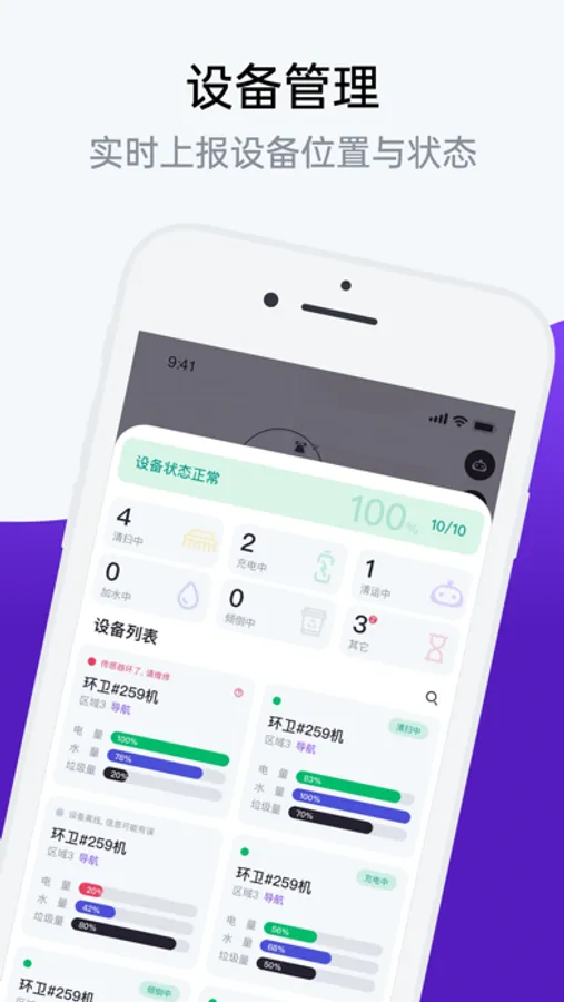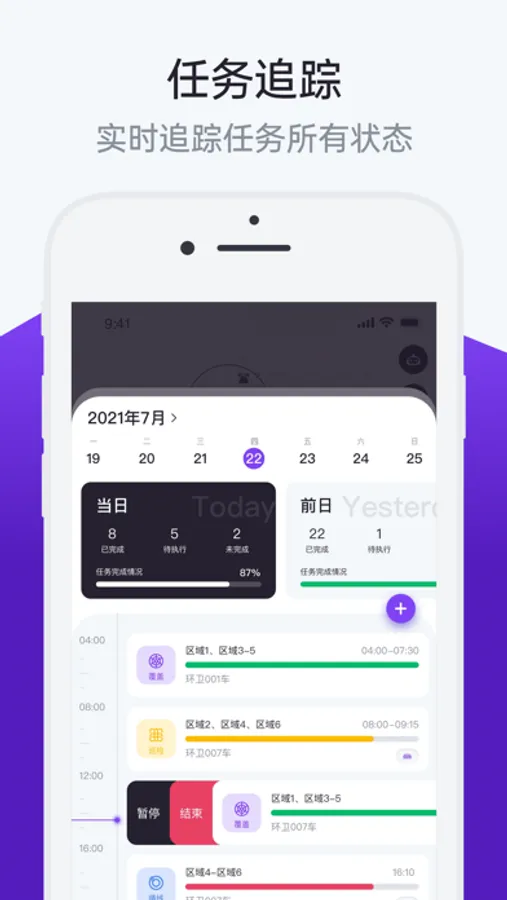 - 任务追踪:设有任务列表、设备列表,实时追踪任务完成状态。
