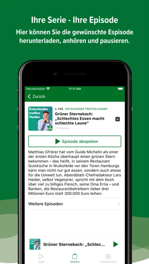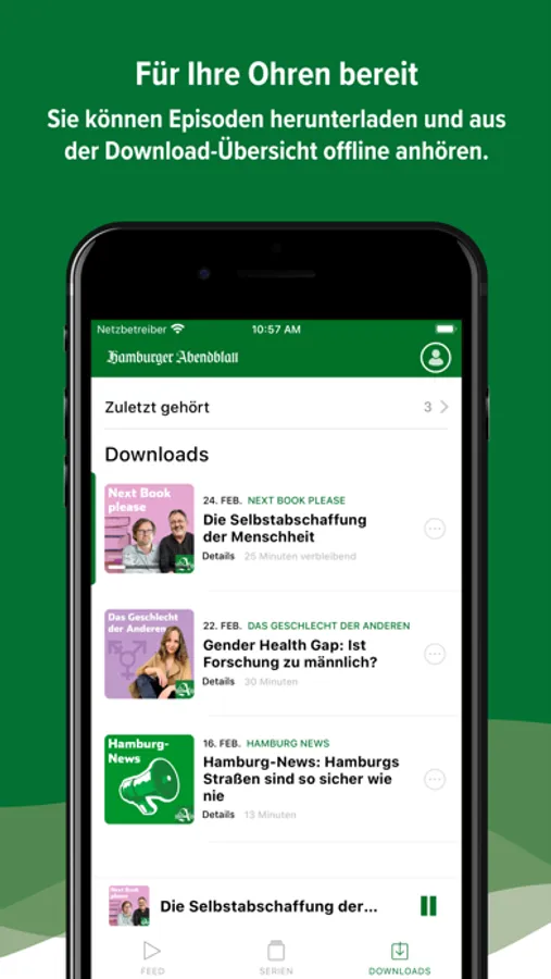 - Überblick der heruntergeladenen Episoden (zum Offline-Hören)