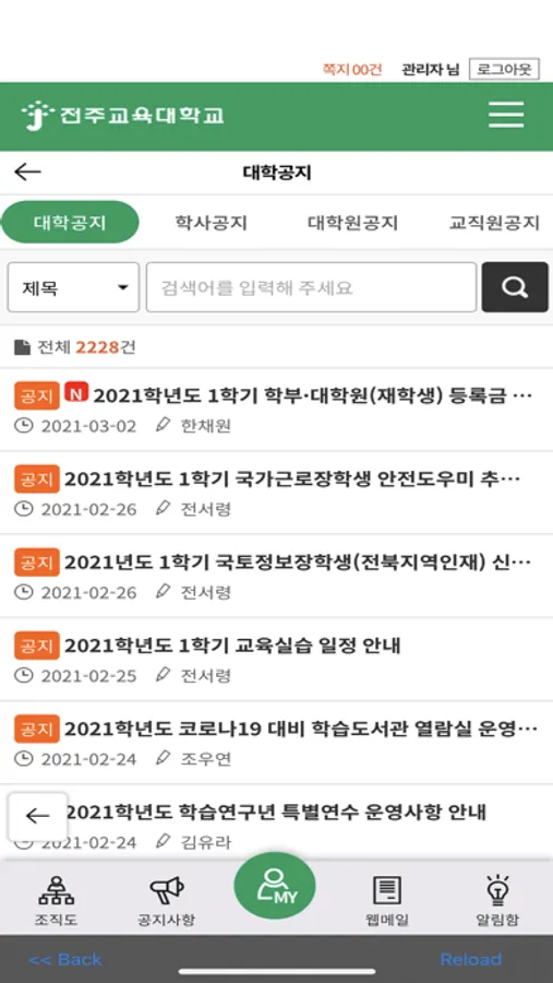 로그인 후 사용자의 권한에 해당하는 다양한 메뉴를 제공받게 되며,
