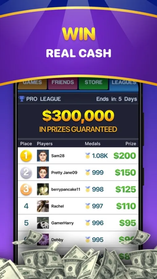 Real Cash Prizes. The more points and medals you earn, the more you could win in the real cash games.