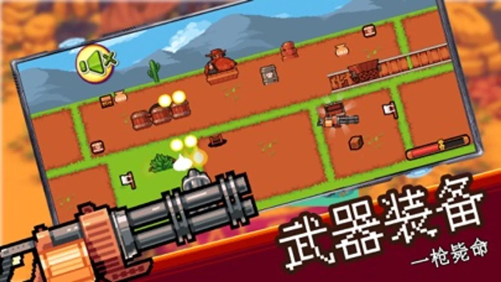 让我们使用各种武器道具,一起在这片荒野的西部上成为乱斗之王吧。