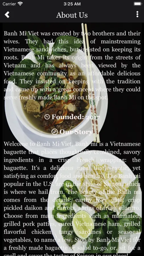 The application gives you the opportunity to order all dishes and drinks online up to 10 miles from Banh Mi Viet.