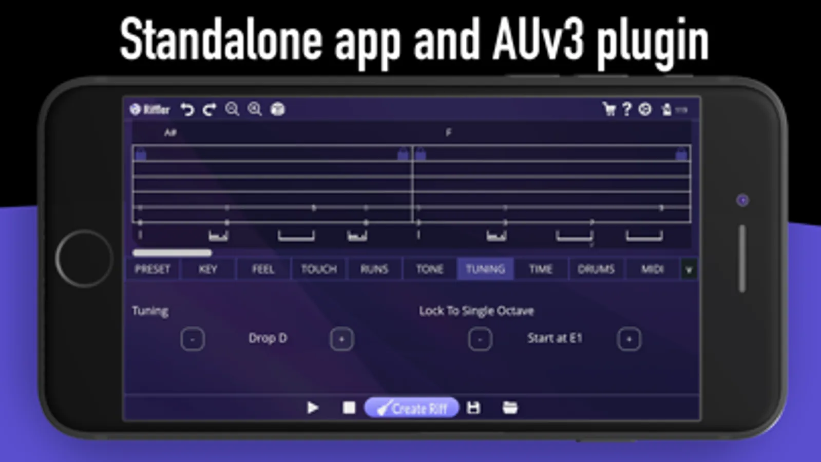 Riffler is a standalone app and also an AUv3 plugin that can be loaded into a host music app. The Riffler AUv3 plugin can be synced inside a host app and can send audio and MIDI to other effects, synths, samplers and virtual instruments.