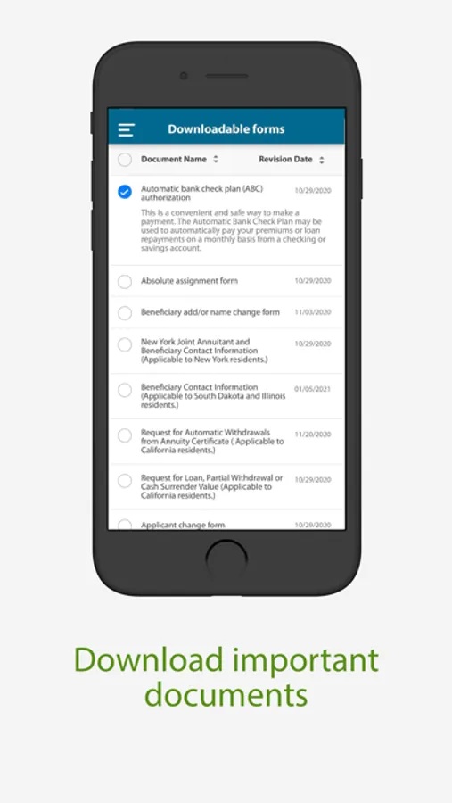 • View your life insurance and/or annuity account values and beneficiary information.