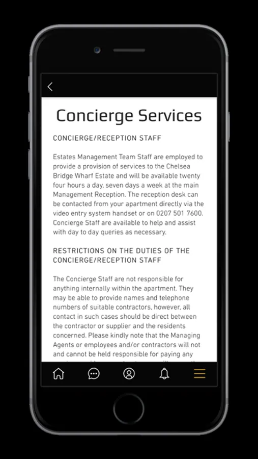 This app has been designed for owners and tenants of Chelsea Bridge Wharf to develop a community and service residents needs.