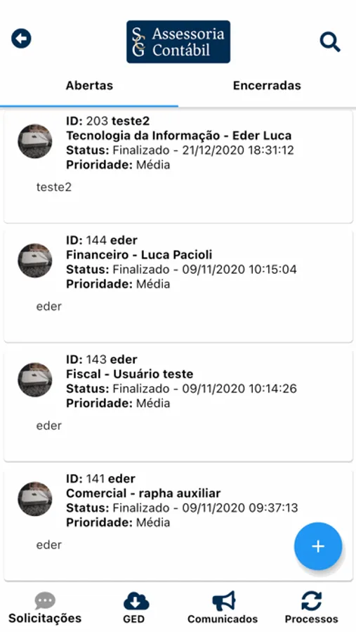 1 - Gerenciamento de Solicitações tanto pelo cliente como pelo escritório contábil;