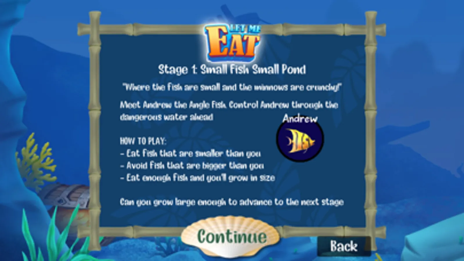 • In Let Me Eat : Feeding Frenzy, you must control a hungry marine predator intent on munching as many other fish as possible.