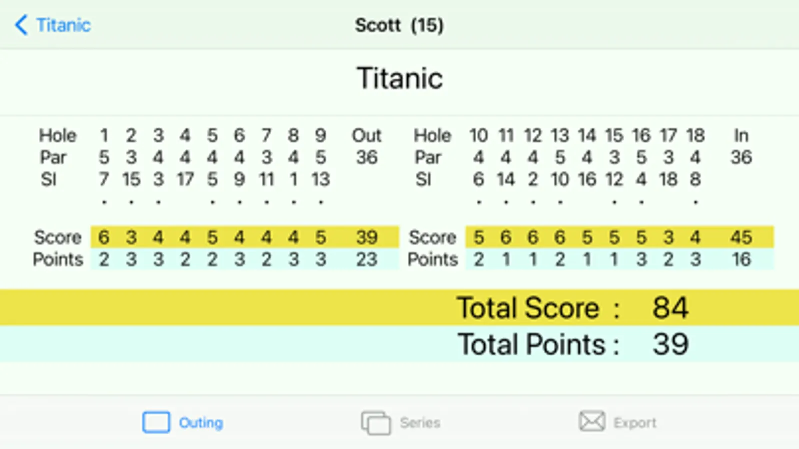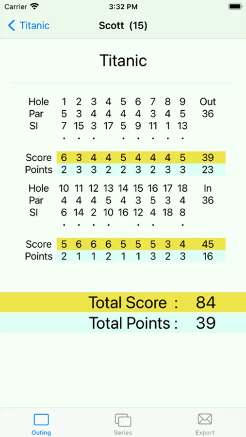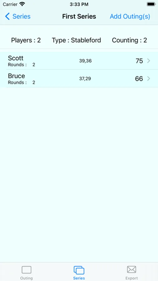 This app is used by me on golf holidays to collect the scores from individual rounds and then combine them into a series. This version of the app is free but does not save data between app executions. The full version of the app "Golf Outing and Series Scorer" is available on the App Store.
