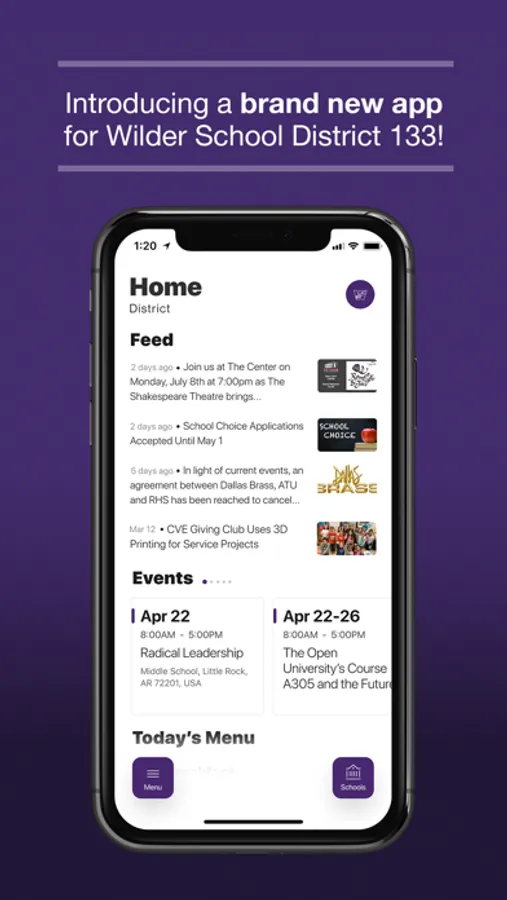 The event section shows a list of events throughout the district. Users can add an event to your calendar to share the event with friends and family with one tap.