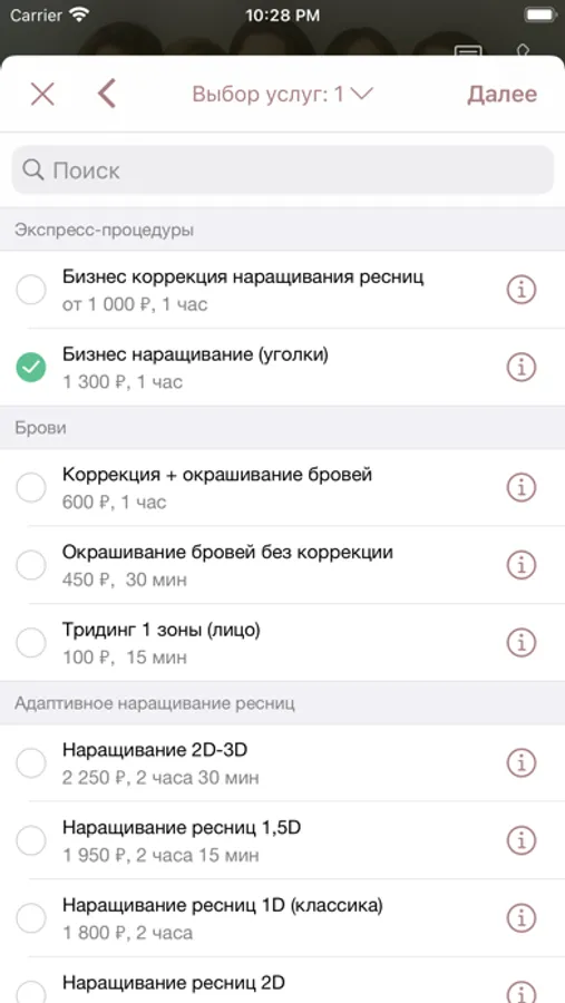 •ознакомиться с прейскурантом, длительностью и описанием услуг