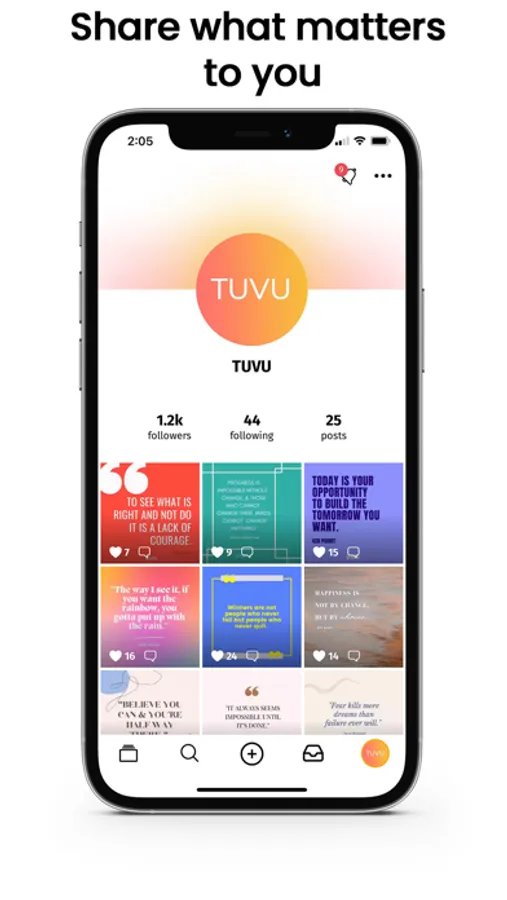 TUVU is all about authentic relationships, verified members, and genuine connections. On TUVU, your content always reaches all of your followers and isn't manipulated by exploitative algorithms.