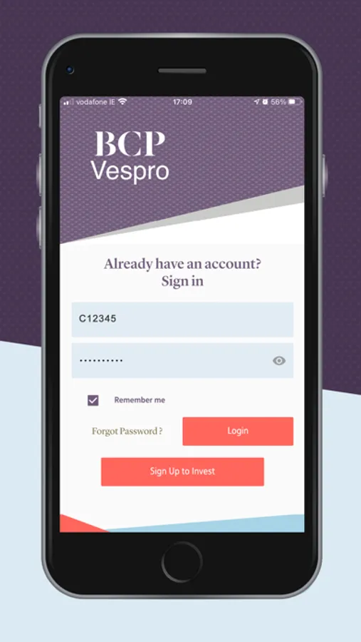 Vespro is BCP’s online investment tool and account management tool. A minimum investment of €5,000 will apply to relevant products where investments are completed in full using vespro.bcp.ie.