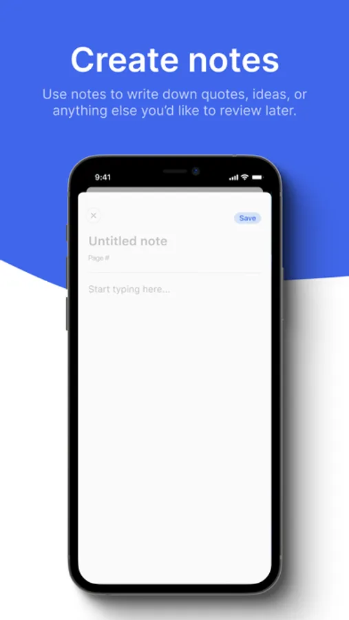 • Create and edit notes for a book by giving it a title, a page number, and some content.