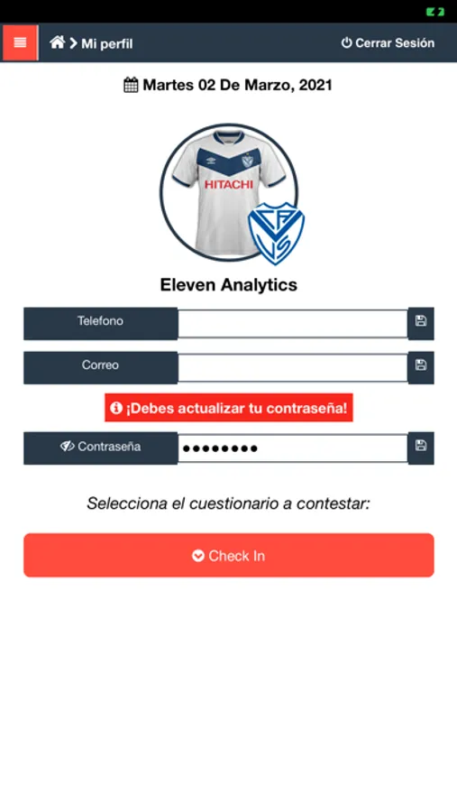 App móvil que permite ingresar al portal de jugadores(as) de Velez