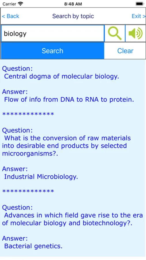 9- you can search all the quiz and notes with the Search button by topic or key words.