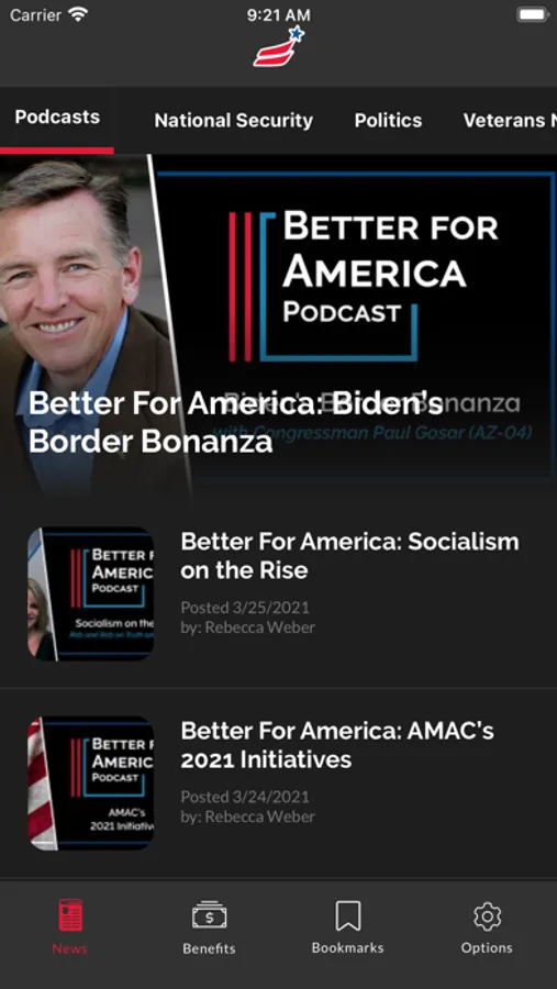With your AMAC app, you gain access to the kind of news reporting the other media outlets won’t cover. AMAC’s News App delivers factual, breaking news on US politics, national security, business, history & culture and more! Read “up to date” real news and enjoy easy access to AMAC’s online library of videos and podcast, Better For America.