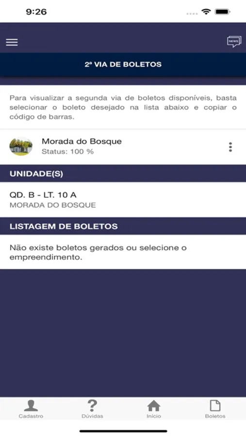 Aplicativo do Portal do Cliente Pró Lotes, permite visualizar as notícias, extratos, andamento da obra, fotos e documentos da obra, além de poder imprimir 2ª via de boletos e solicitar atendimento.