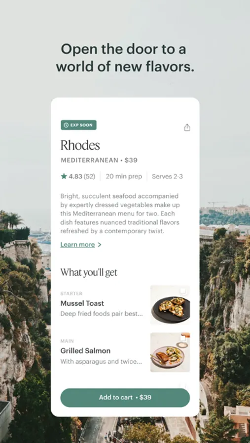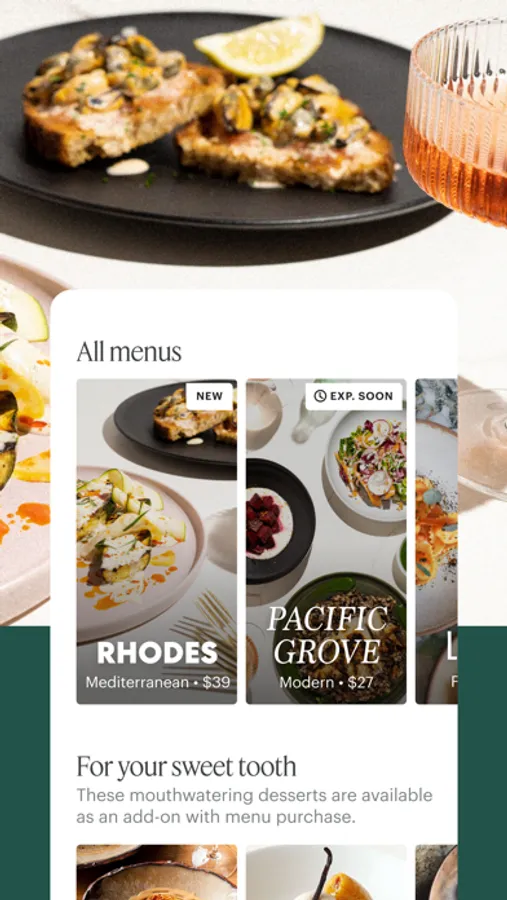 Access the taste, texture and temperature of your favorite restaurants through Entrée’s finish at-home dining experiences. Each multi-course menu is exclusive, curated and simple to execute. Enjoy incredible flavors from dishes including black truffle croquettes, ribeye steak in black mole sauce, seven-mushroom risotto or salmon en papillote.