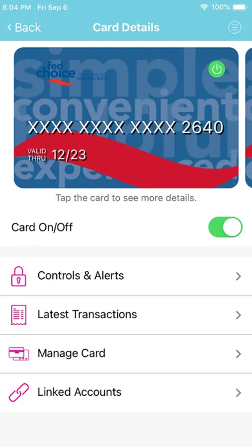 • Turn any card on, or off—in seconds. Perfect for safety, security… and those scary moments when you’re not quite sure where your card might be.