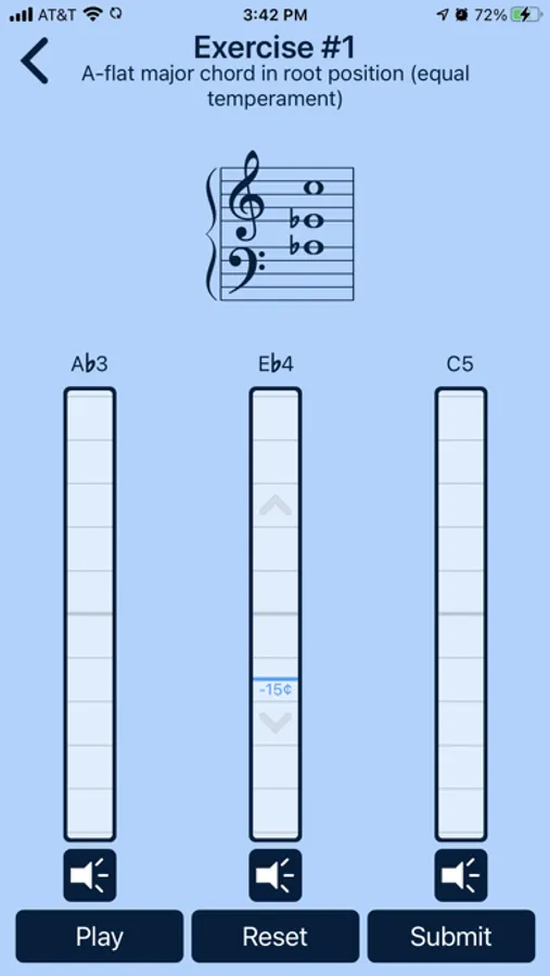 Learn to precisely tune pitches in randomly generated chords, scales and melodies, using equal temperament or just intonation!