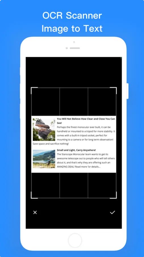 Intelligent OCR text recognition,scan the text from an image taken with your phone's camera or photo gallery.