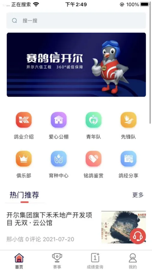 开尔鸽友的信息分享和赛鸽管理平台。鸽友可以实时关注赛鸽成长训练情况,观看比赛视频获取赛事成绩,阅读信鸽行业最新资讯,分享育种经验配对心得。
