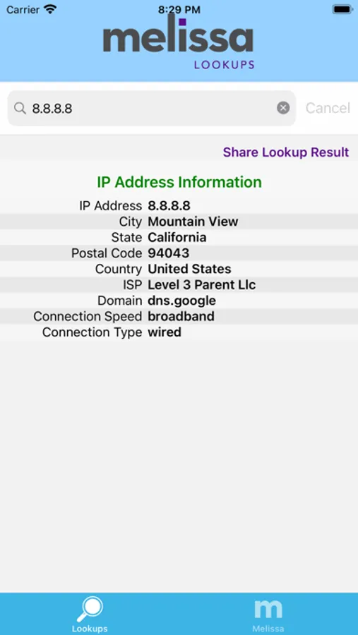 - Check an IP address and display details related to an IP address.