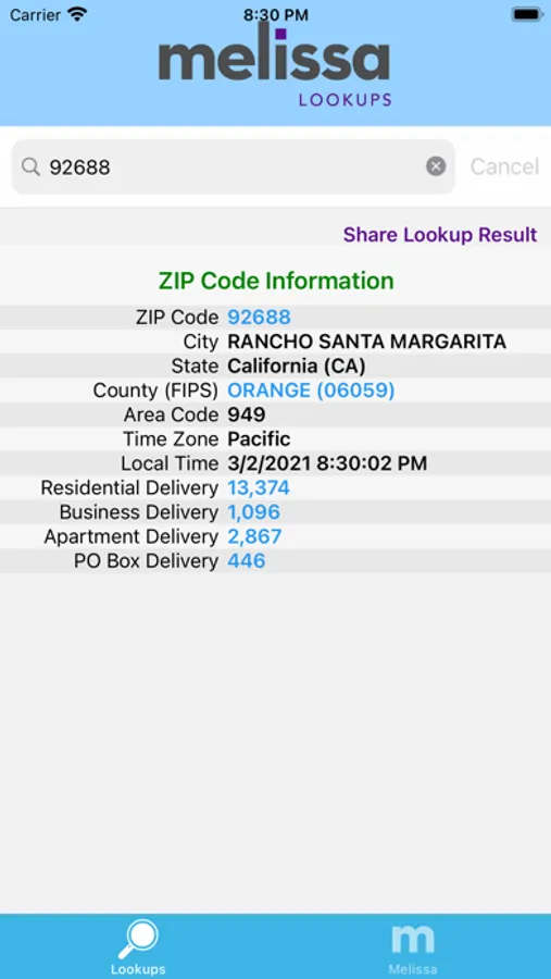 - Search a ZIP Code and additional information such as number of business and residential deliveries.