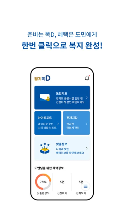 경기똑D를 활용하셔서, 나를 위한 스마트한 서비스를 받아보세요.