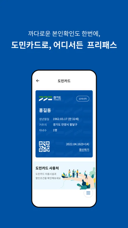 마이데이터를 활용하여 경기도내 공공시설물 입장시 도민인증, 할인혜택 여부를 확인 받으세요