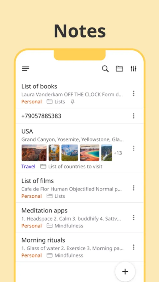 5. File all your ideas, checklists & thoughts in notes using tree-structured folders