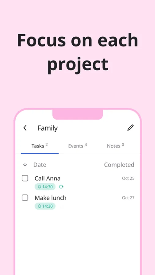 ● using projects, you can effectively focus on a specific area, working with tasks, events & notes right from inside of the project