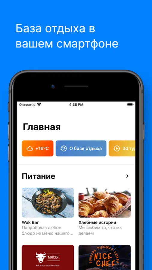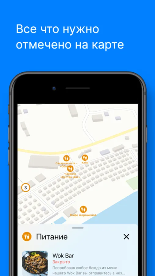 На базе есть множество мест, где можно вкусно потрапезничать в приятной компании, и даже дети не останутся равнодушными к местной кухне. Приложение позволяет увидеть их все и проложить маршрут от вашего местоположения. Так можно не блуждать в поисках вкусненького, а каждый день пробовать что-то новое, не боясь заблудиться на территории базы или остаться голодными. Тем более что подробная информация о заведении с часами работы и номерами для связи прилагается.
