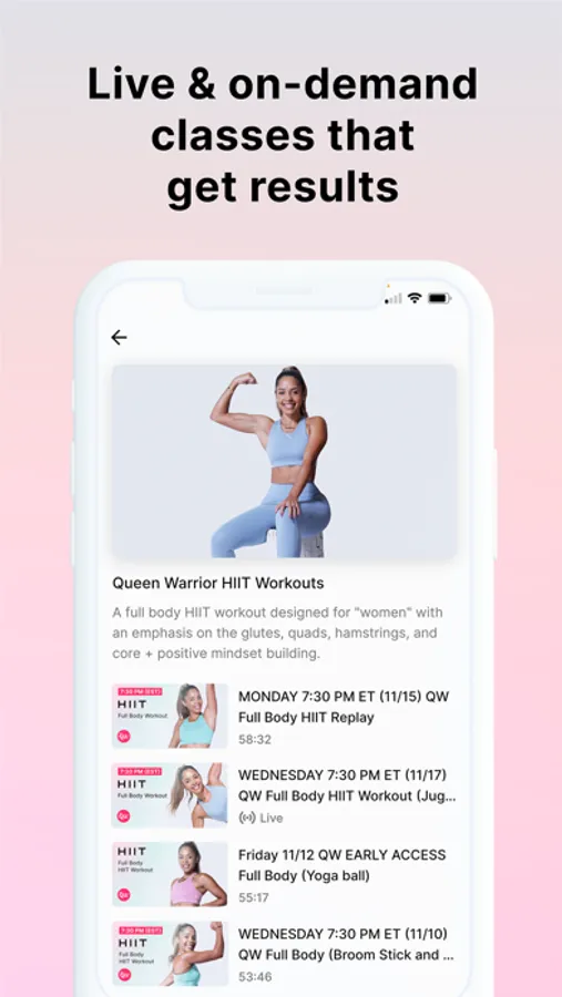 As a Queen Warrior, you get access to both live classes and replays.