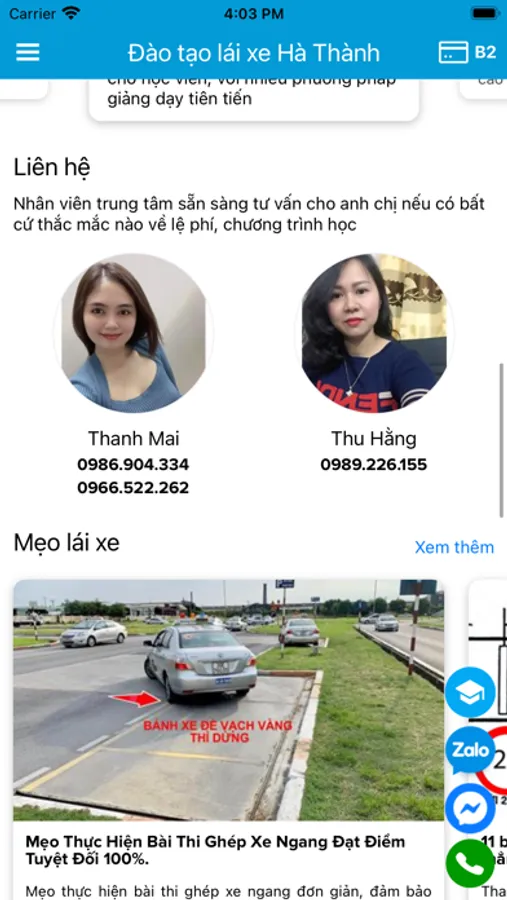 - Cung cấp thông tin mới, đăng ký, kiểm tra lịch học tại Trung tâm đào tạo lái xe Hà Thành.