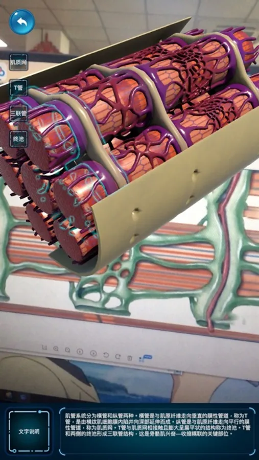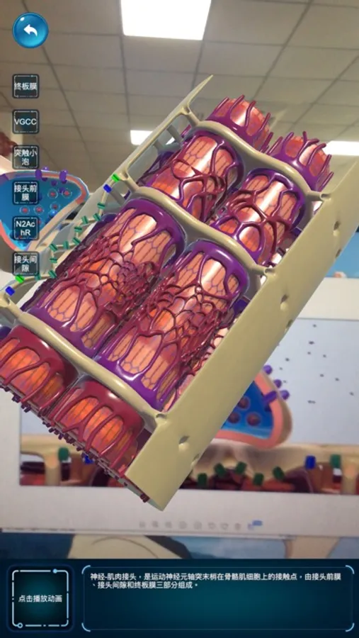 用AR技术展示神经肌肉模型的细节部分,动画展示相应的神经肌肉动画