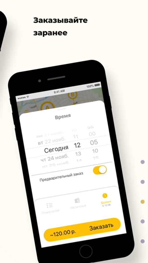 Вызывайте такси к определенному времени, если нужно запланировать поездку заранее. Например, поездка в аэропорт, чтобы успеть на регистрацию.