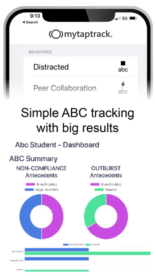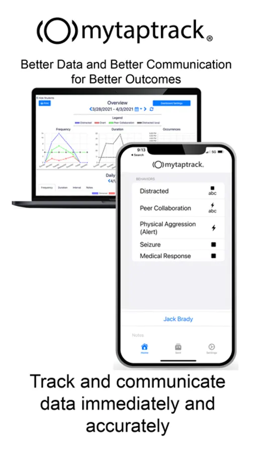 The mytaptrack® app provides another convenient way to track behaviors, symptoms, service minutes and accommodations for the mytaptrack® platform. This information is securely communicated back to the platform to ensure that others can collaborate in improving outcomes for students, patients and others.
