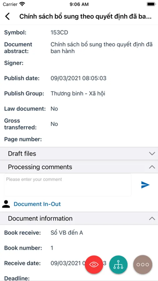 This application supports incoming and outgoing document managements, it includes many features such as view flow of documents, submit for signing documents, reading files... This is a smart product that supports for corporations or companies that use it to save time and money.
