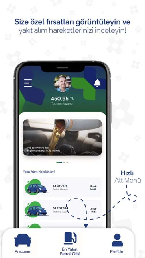 ArtıNokta ile akaryakıt alırken aracınızdan inmenize gerek kalmaz. Uzun ödeme kuyruklarına girmeden, yalnızca telefonunuzu kullanarak hızlı, indirimli, güvenli, kolay yakıt alabilirsiniz, üstelik yakıt tüketiminize bağlı olarak indirimli oranlarımızdan da yararlanabilirsiniz.