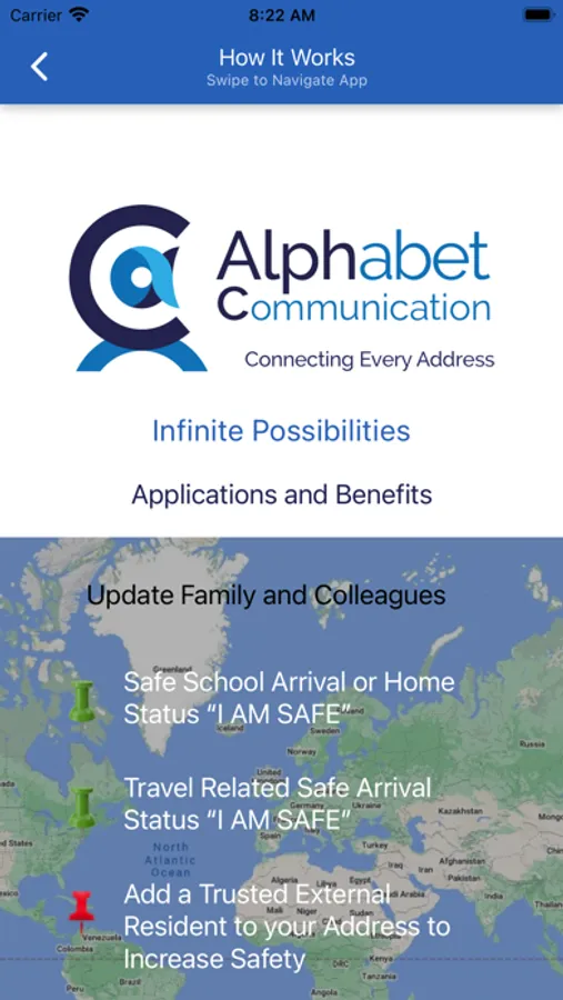 This App uses patented technology allowing you to stay in touch with family, friends and colleagues across the globe by sending them help and safe alerts from up to 8 addresses. The application provides your exact location when help is needed to the household which may be critical when first responders assistance is required. At AlphC we license our technology to make our world a safer place.