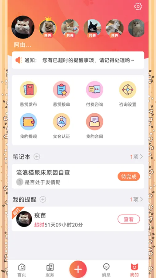 【宠物共养】与朋友一起为宠物编写猫咪档案,随时查看健康、花费等图片信息。大主人可将档案继承予小主人