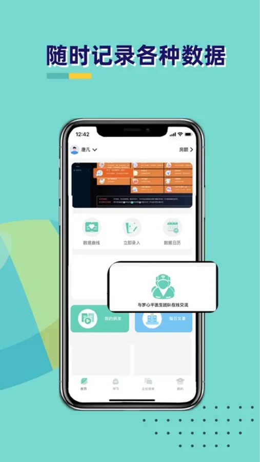 建立患者病症档案,通过App建立患者与医生的联系,患者或家属可通过App建立档案,录入各项数据,实时查看健康数据记录,通过日历查看与曲线查看等方式,观察数据变化从而做出及时治疗方案。建立患者之间的交流平台,相互学习治疗经验与心得。